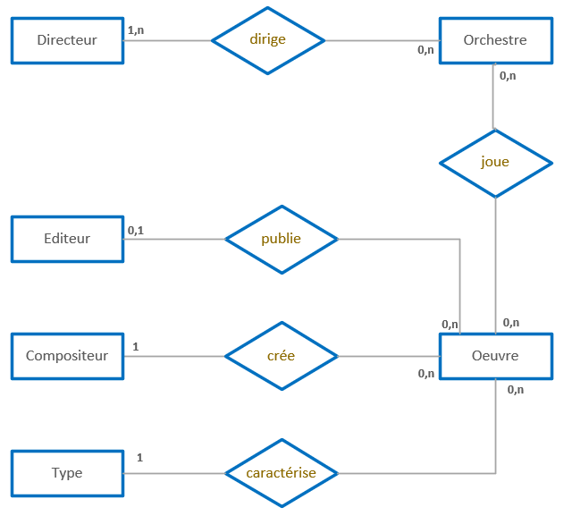 Il s’agit de mettre en place une base de données pour stocker les œuvres interprétées par des orchestres. Dans les grandes lignes :