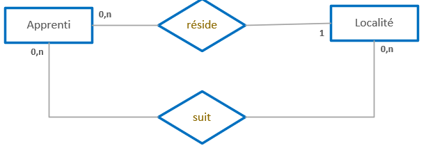Les cardinalités sont formulées par 2 valeurs → min, max. Si la valeur min et max est identique, on utilise une forme abrégée 1,1 → 1.