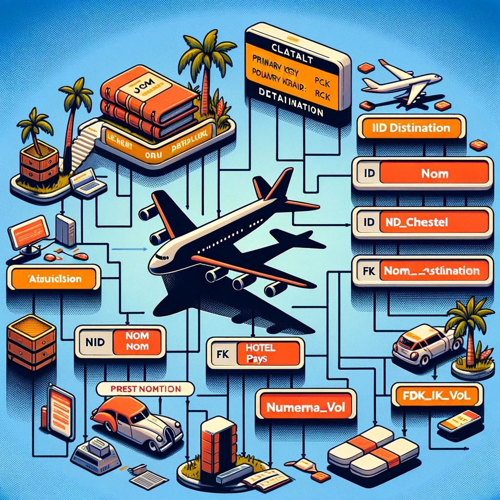 Voici un script SQL de création de la base de données db_voyage. Cette base de données permet de gérer les aspects clés d'une agence de voyage, en connectant les clients, leurs réservations de vols et d'hôtels, et leurs avis sur les hôtels.